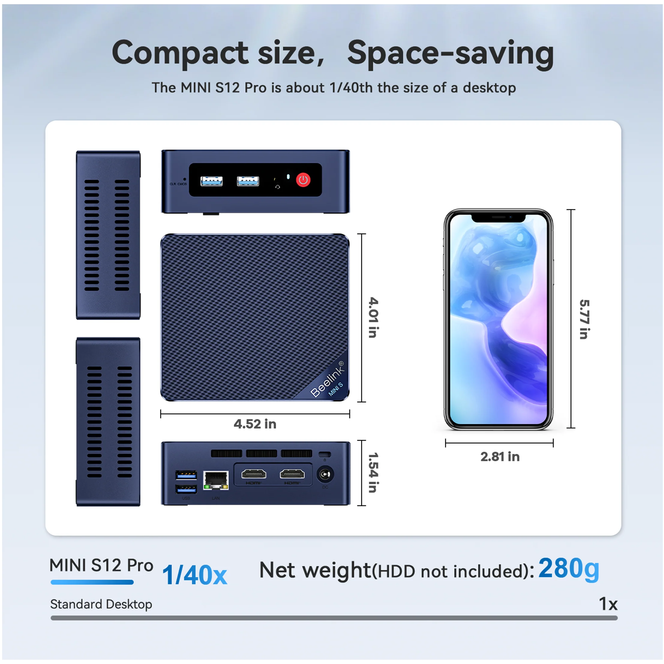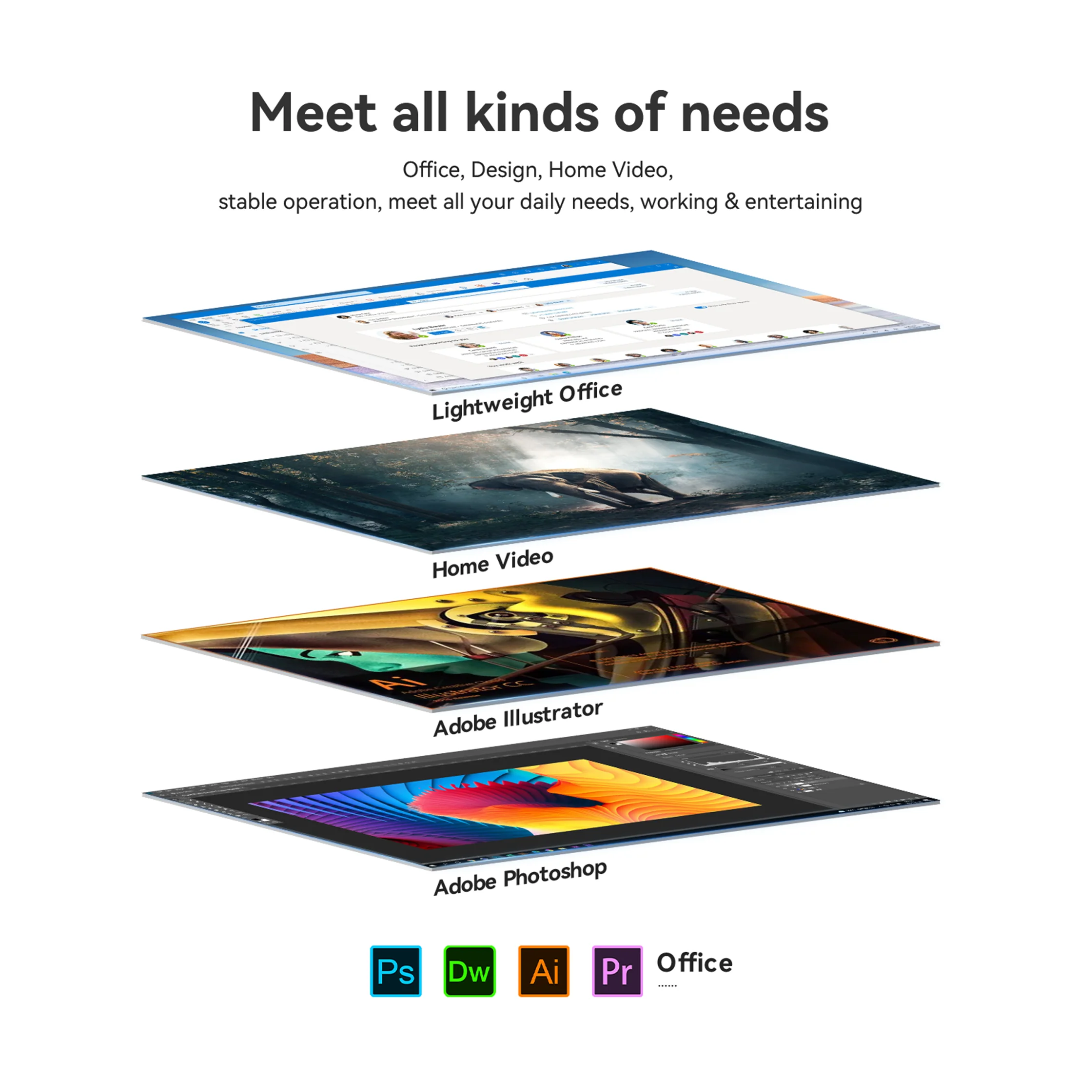 (1) 12th Gen Intel N100: Combines performance and silence (<25dB) for 4K streaming and multitasking.