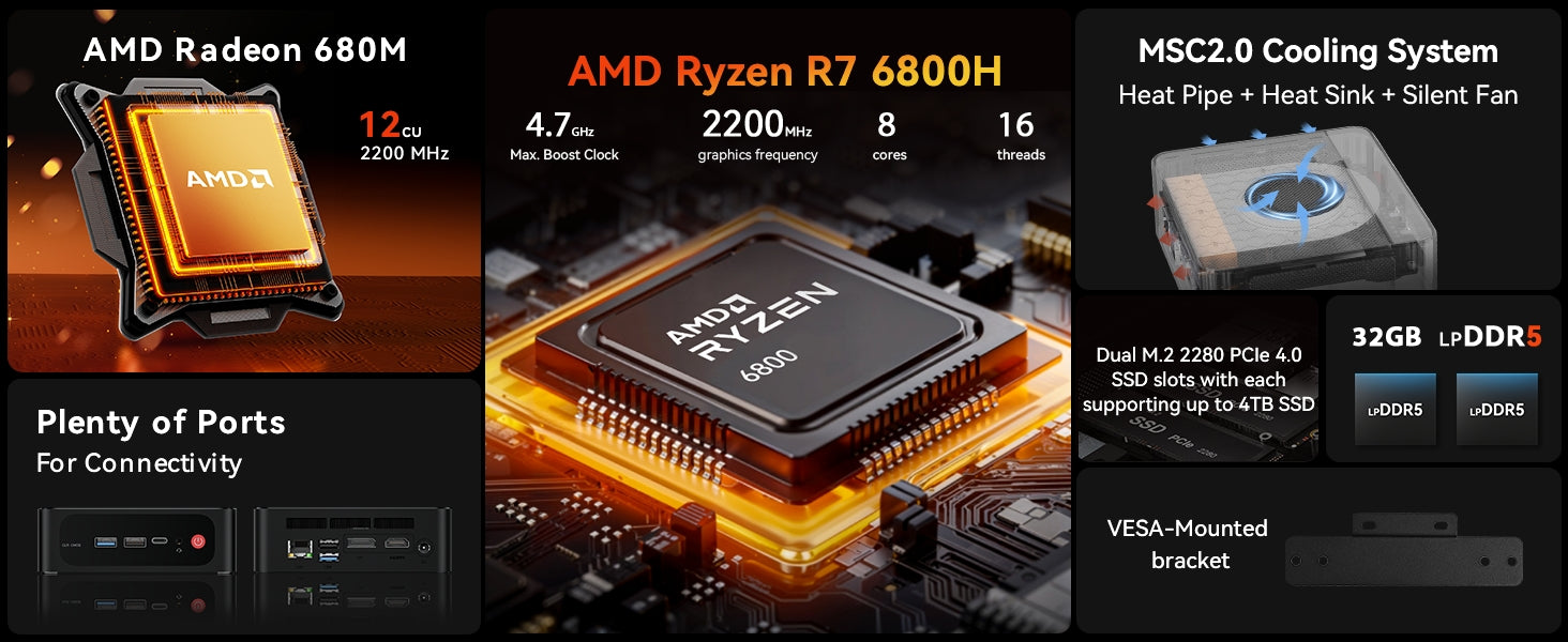 (4) Dual 4K@60Hz Display: HDMI and DisplayPort 4K outputs with AMD Radeon Graphics for crisp visuals—ideal for multitasking or home theater.