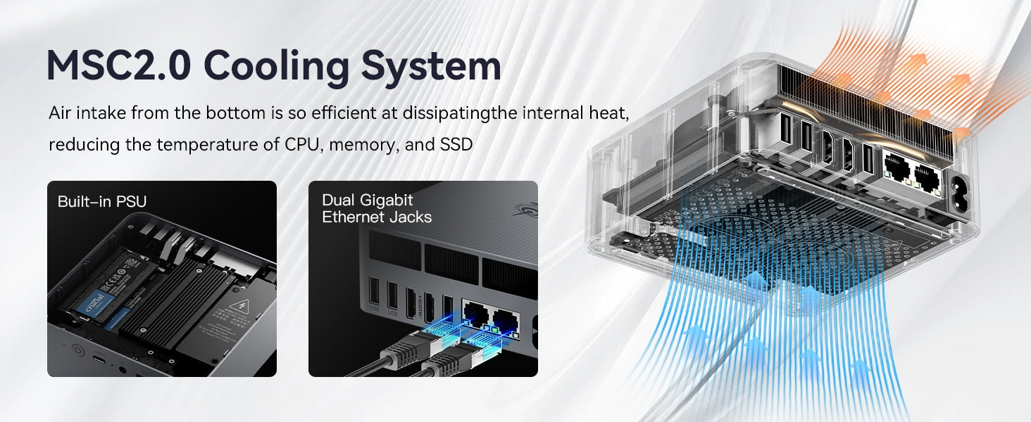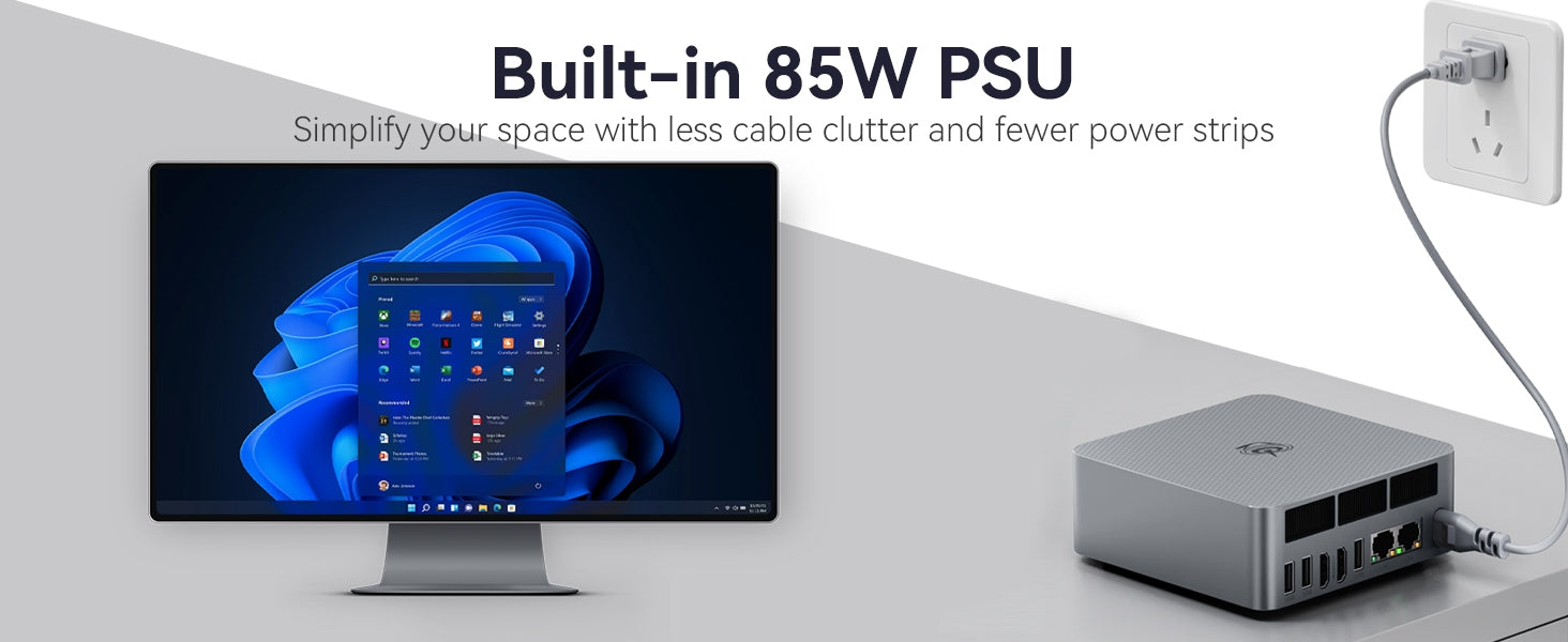(4)Built-in 85W PSU & Dual LAN for Clean Setup:No external adapter needed—just one cable for power. Dual 1000M LAN ports enhance security, while WiFi 6 & Bluetooth 5.2 ensure fast wireless connectivity.