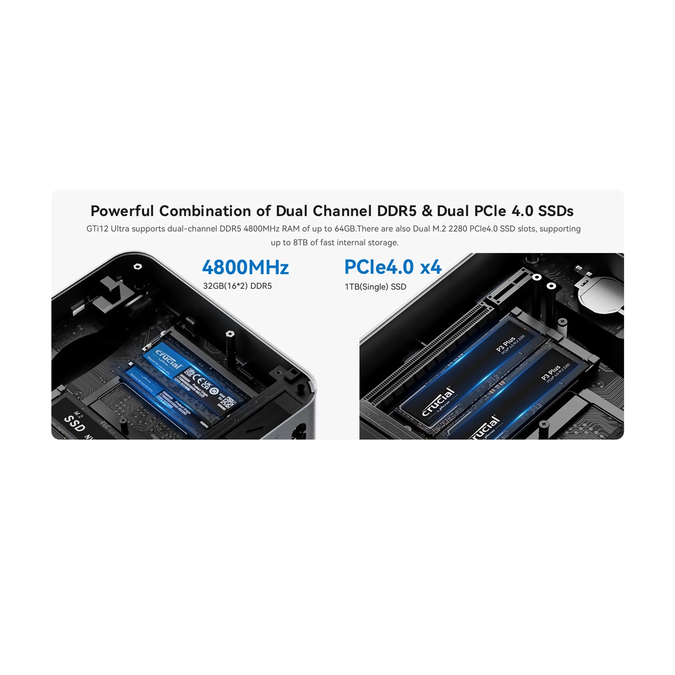 Powered by cutting-edge processors for maximum computing power. Our mini-PCs deliver desktop-level performance in a compact size, perfect for work and entertainment.