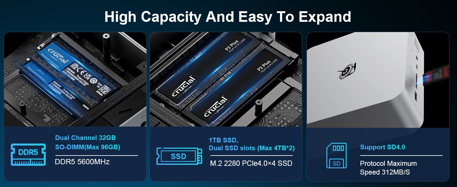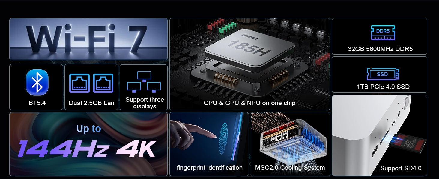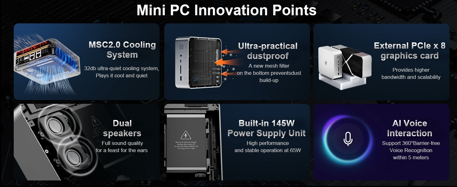 Powered by cutting-edge processors for maximum computing power. Our mini-PCs deliver desktop-level performance in a compact size, perfect for work and entertainment.