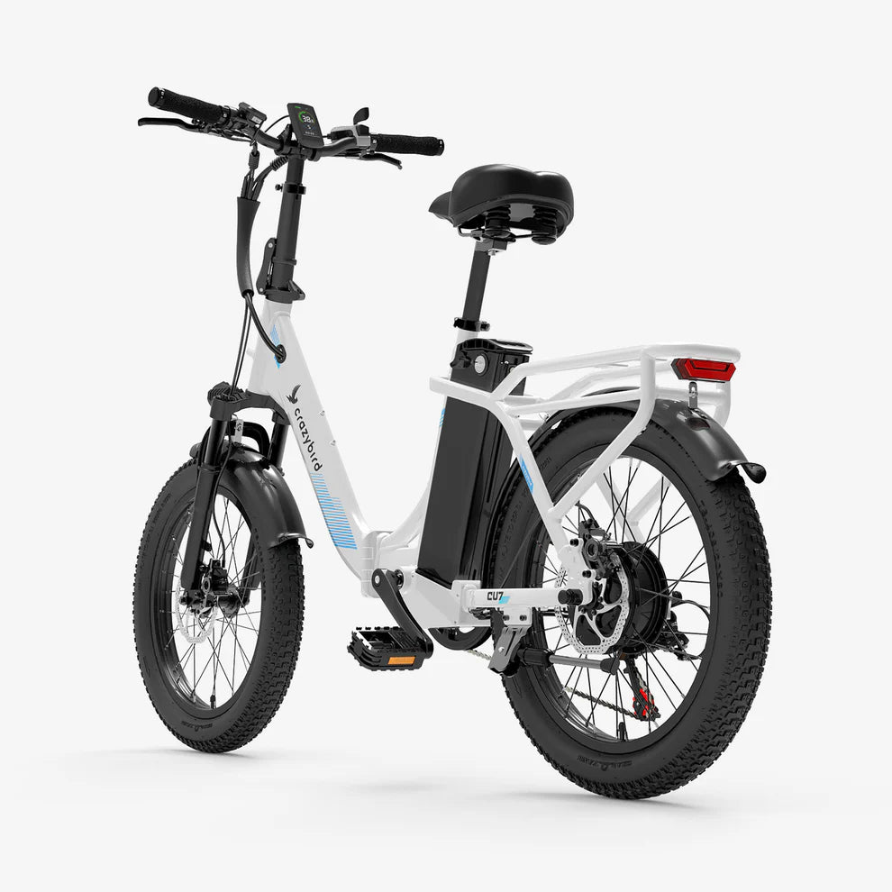 (4)Built for Urban & All-Terrain Use: 20"x3" fat tyres, hydraulic disc brakes and suspension for a smoother ride.